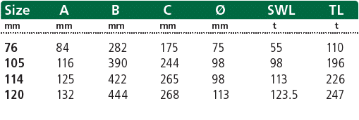 Note: The measurements in tables may vary between different models. Sotra Anchor & Chain AS can not be hold responsible for any deviate between tables and delivered equipment.